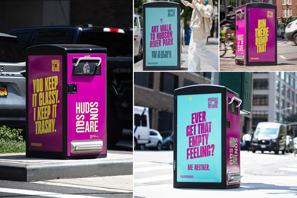 Bigbelly’s smart, fully enclosed waste and recycling systems gave Hudson Square a dual benefit — cleaner corners and a creative canvas.